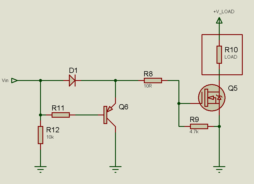ReplyDeleteIn fig 5,You say VGS =Vin-0.7v,then if +V-Drive=12v and Vin=5v.Surely 5-0.7(Base,emmittter of Q1)=4.3v turns Q1 on?Then 12v goes through to Gate of Q2 and turns the Fet on?